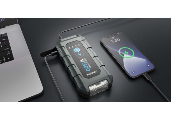 Το V1500 της TOPDON πρωτοπορεί ως φορητή συσκευή εκκίνησης, παρέχοντας 1500 αμπέρ μέγιστης ισχύος για άμεση εκκίνηση. Εκκινήστε γρήγορα και με ασφάλεια μπαταρίες μολύβδου-οξέος 12V σε δευτερόλεπτα για αυτοκίνητα, σκάφη, μοτοσικλέτες και φορτηγά με κινητήρες βενζίνης έως 6,5L ή ντίζελ έως 4,0L. Το V1500 λειτουργεί και ως power bank για τηλέφωνα, tablet και άλλες συσκευές, ενώ μπορεί επίσης να τροφοδοτήσει συσκευές 12V DC. Χρησιμοποιήστε τη λειτουργία boost του V1500 για να εκκινήσετε ιδιαίτερα δύσκολες μπαταρίες. Το V1500 είναι η ολοκληρωμένη λύση για έκτακτες ανάγκες που σχετίζονται με την τροφοδοσία και τις μπαταρίες.